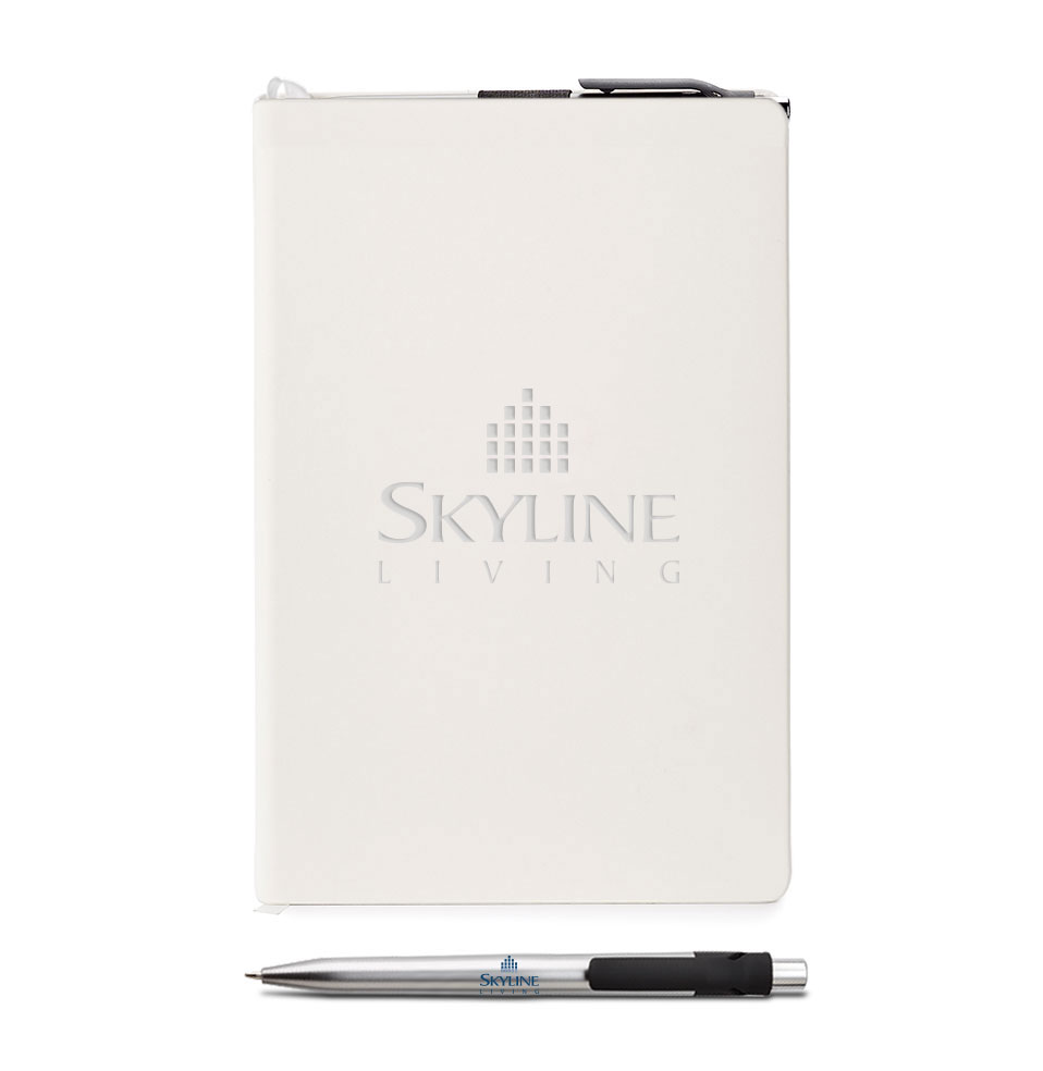 This hardcover perfect bound journal has 192 ivory lined pages with a colored page edging and ribbon bookmark, matching the color of the journal cover.To top it all off, you'll find the pen secured in the pen loop connected to the top of this journal.